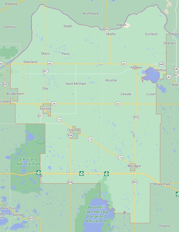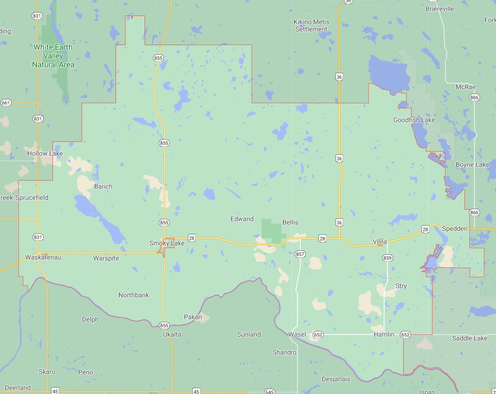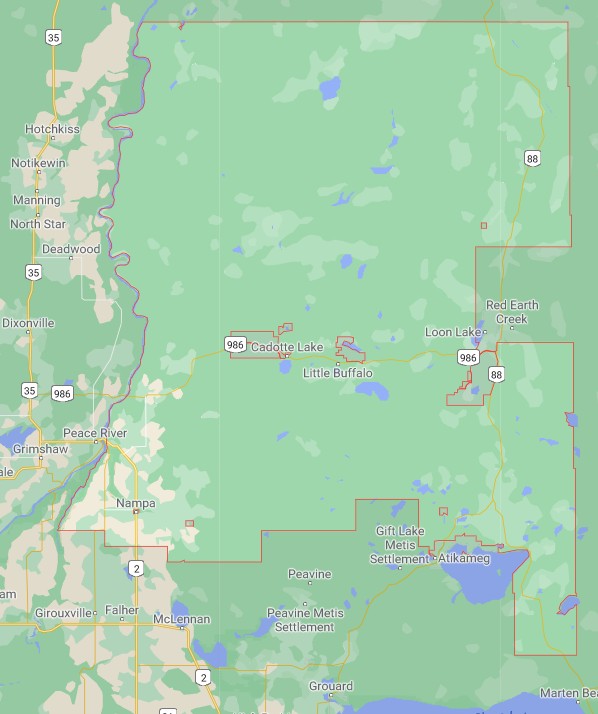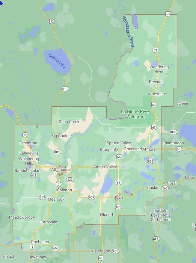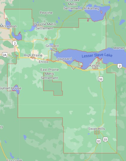 Mackenzie, Wood Buffalo, ID24, Northern Lights, Clear Hills, Northern Sunrise, Opportunity, Smoky River, Grande Prairie, City of GP Saddle Hills, Fairview, Peace, Town of Peace River, Barrhead, Lac Ste Anne, Westlock, Thorhild, Minburn, Sturgeon, Smoky Lake, St Paul, Big Lakes, City of Edmonton, Strathcona, Elk Island, Lamont, Woodlands, ID12, ID25, Jasper, Yellowhead, Brazeau, Leduc, Beaver, Wainwright, Flagstaff, ID9, Provost, Paintearth, Lacombe, Kneehill, Badlands, Starland, Mountain View, Big Horn, Rocky View, Calgary, Kananaskis, Foothills, Vulcan, Newell, Taber, Pincher Creek, Forty Mile, Crowsnest Pass, Cypress, City of Medicine Hat, Ranchland, Willow Creek, Lethbridge, City of Lethbridge, Wheatland, Acadia, Parkland, Lesser Slave River, Lac la Biche, Bonnyville, Athabasca, Two Hills, Vermilion_River, Greenview, Spirit River, Birch Hills, Stettler, Special2, Special3, Spcial4, Red Deer, Clearwater, Ponoka, Wetaskiwin, Camrose, Cardston, Warner, and BC Peace